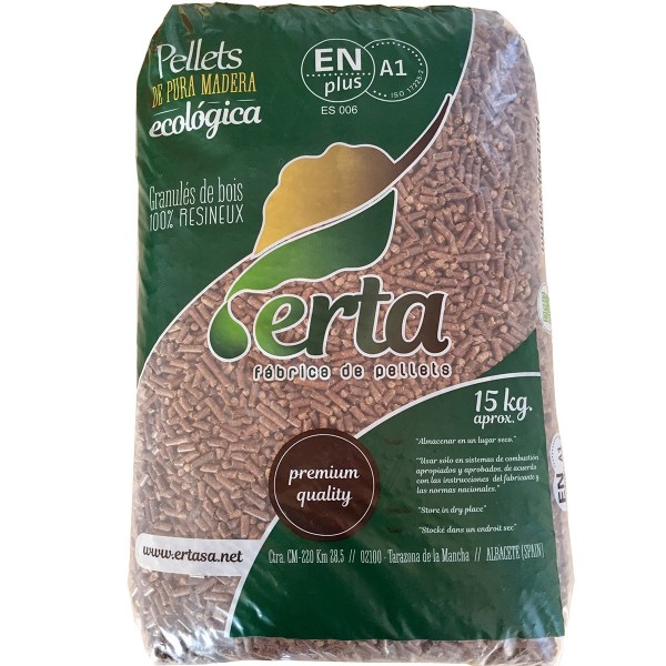 Pellet de madera conífera 100%. Cuenta con la certificación En PlusA1.